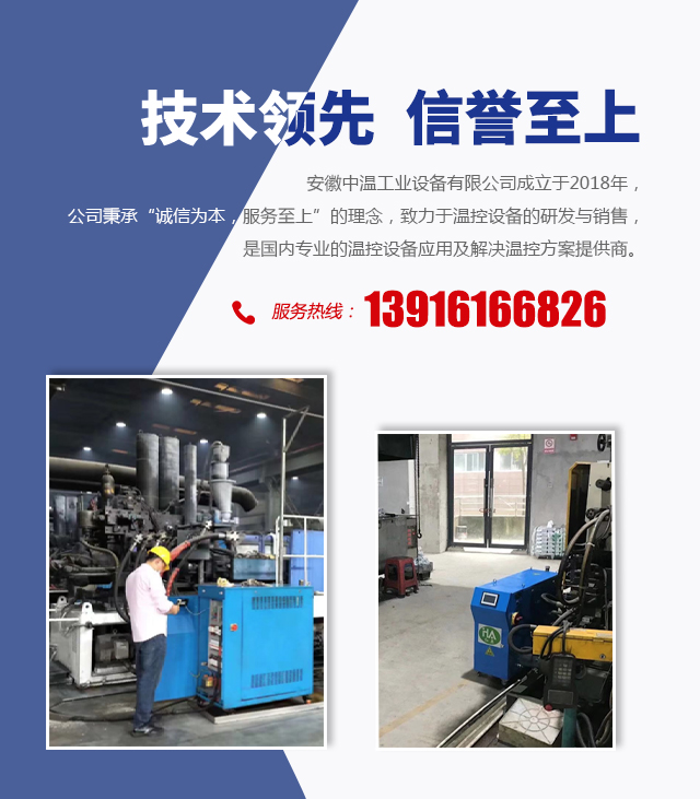 安徽中溫工業設備有限公司成立于2018年,公司秉承“誠信為本,服務至上”的理念,致力于溫控設備的研發與銷售,是國內專業的溫控設備應用及解決溫控方案提供商。